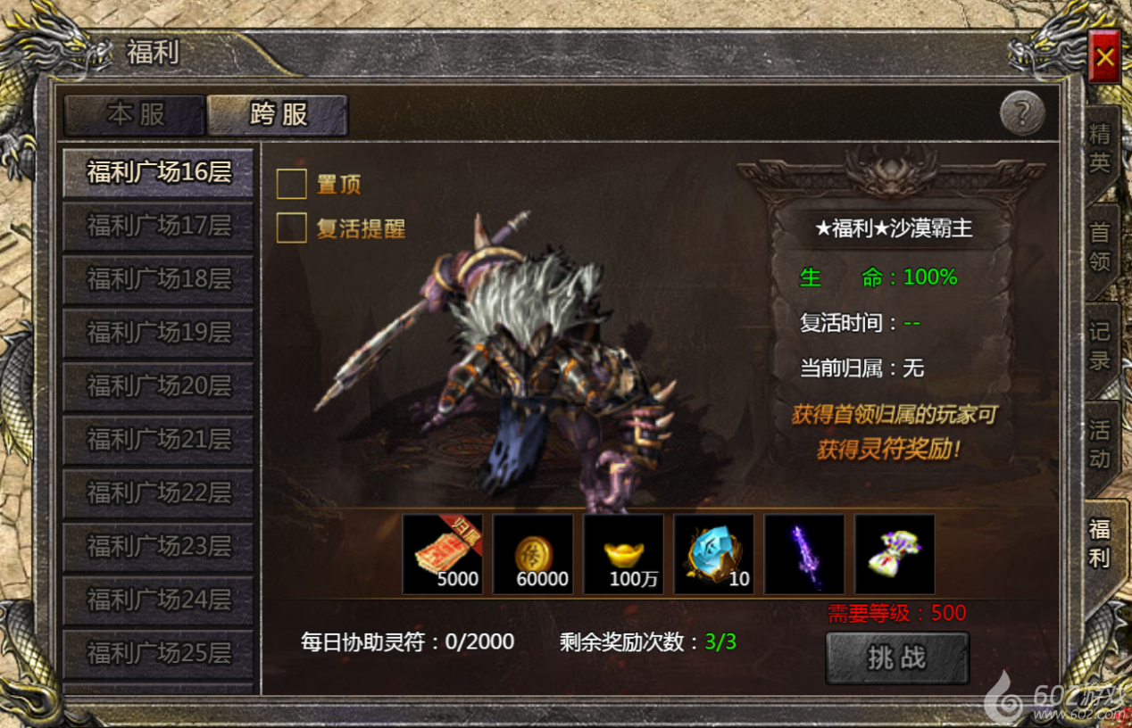 1.3玩家可以与跨服玩家共同挑战福利广场