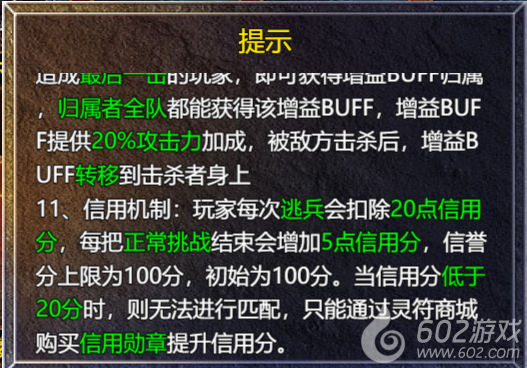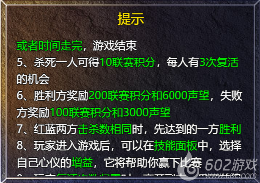 功能说明:每月5-14号的14:40-15:00与21:00-21:20开放全平台跨服排位,玩法共有6个段位,每月14日22:30结算段位奖励并重置积分为0。玩法每天可参与3次,赛季内每天增加3次,最多叠加至30次,每局游戏5分钟,游戏分成两方,当一方无复活次数或时间耗尽,游戏结束。地图中央放置雕像,击杀雕像造成最后一击的玩家获得增益BUFF归属,归属者全队都能获得BUFF效果,增益BUFF提供20%攻击力加成,被敌方击杀后,增益BUFF将转移到击杀者队伍。