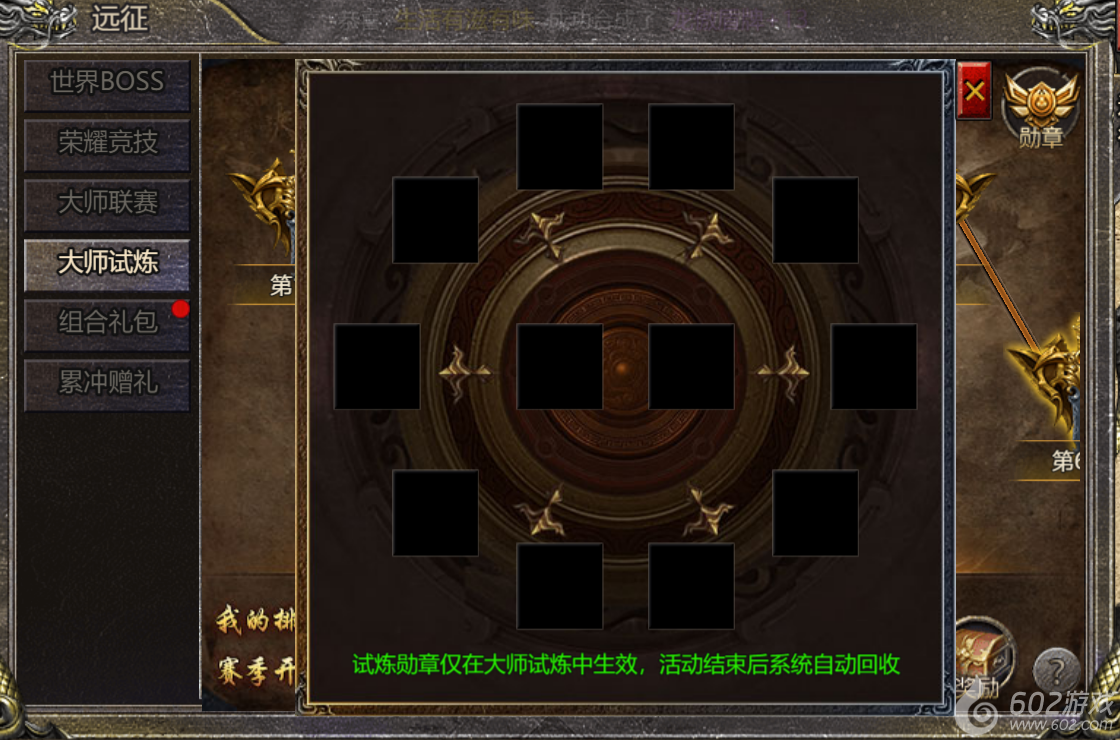 3. 功能说明:每月5-14号开启大师试炼,每日10-22点可挑战,大师试炼单层不限次数挑战,击败试炼魔兽即可进入下一层,大师试炼有专属装备试炼勋章,属性仅在试炼中生效,每月14号22:30结算排行并发放奖励,随后回收试炼勋章,层数重置为0